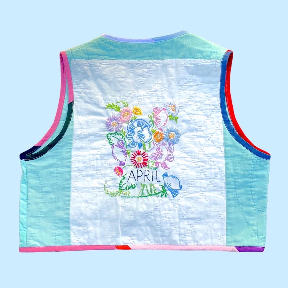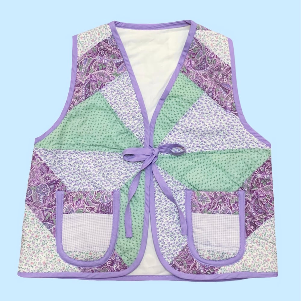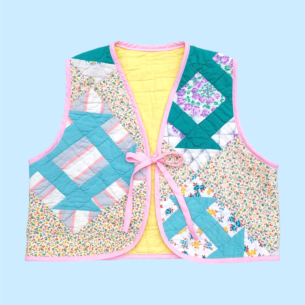 Quilted Cropped Front-Tie Vest — Blue Butterflies