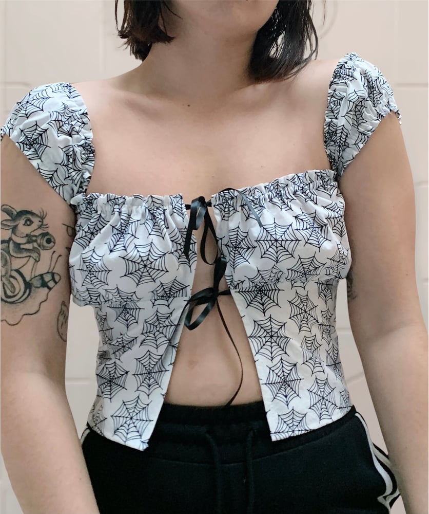 Puff Sleeve Shirred Crop Top — Strawberry Vines